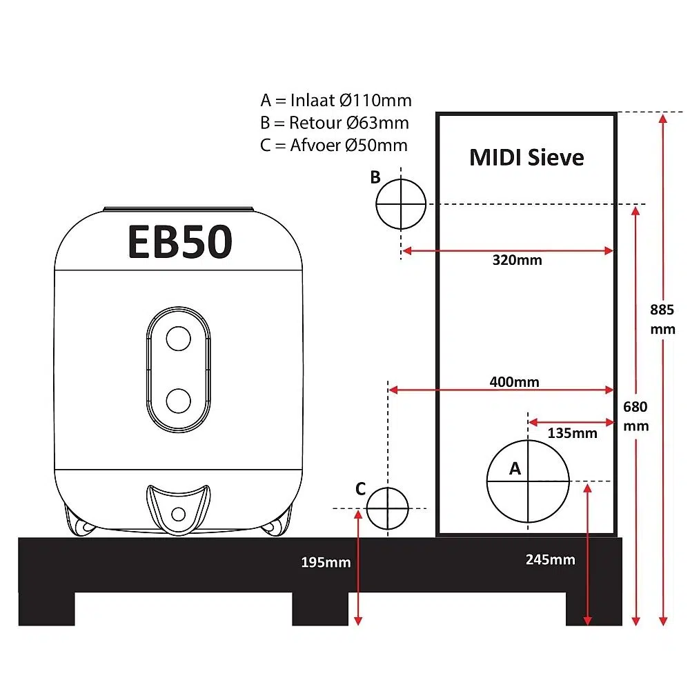 1 x 50 mm voor de vuilafvoer voor het terugspoelen van het vuil.
